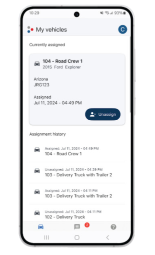También proporciona alertas de mensajes nuevos, lo que garantiza respuestas oportunas y al mismo tiempo mantiene canales de mensajería seguros para proteger la información del usuario. Además, los conductores pueden asignar y desasignar vehículos sin esfuerzo a través de la interfaz intuitiva de la aplicación, con mínima información y orientación.